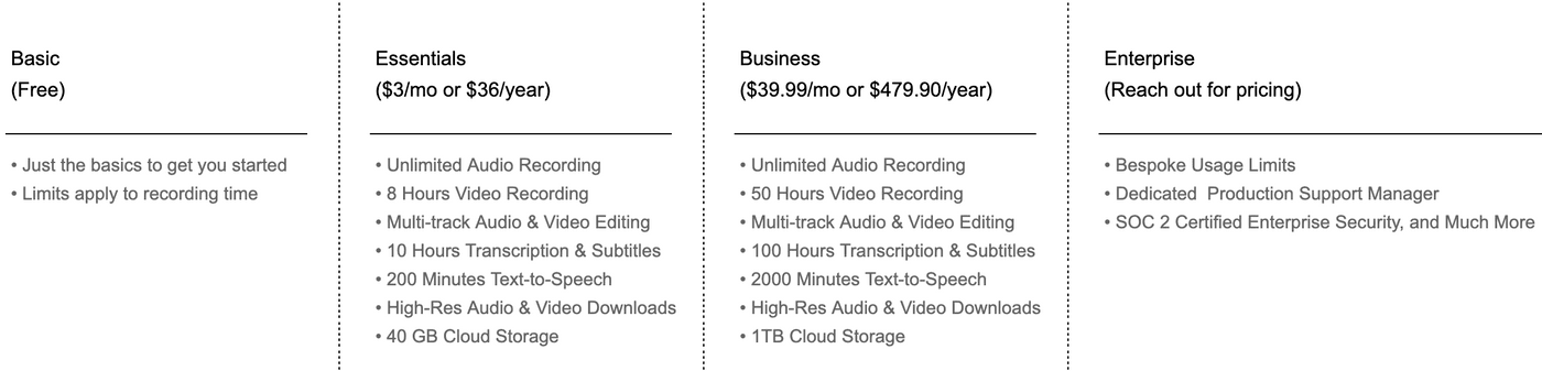 Offers a free plan; the paid packages start at $3/month. Compared to competitors, Podcastle stands out for combining cloning, generation, and editing in one streamlined platform, without charging extra for advanced features.