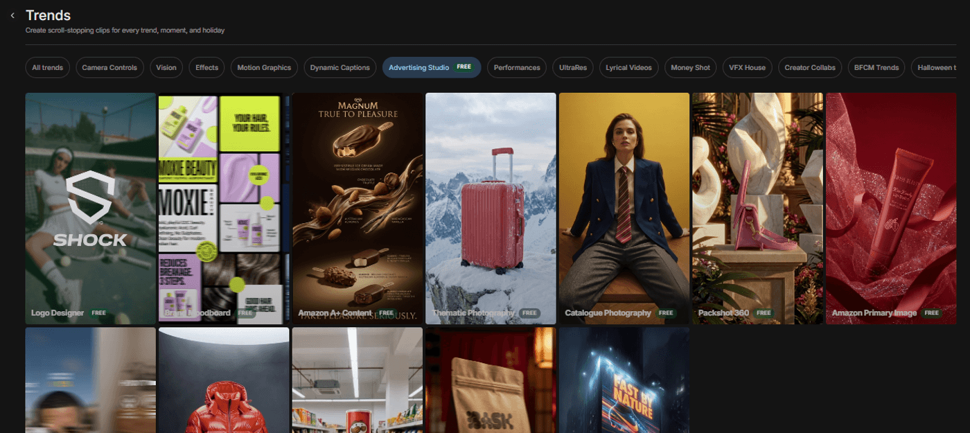 Yes. This is one of the main advantages of building your Amazon product photography workflow inside invideo. You bring your base photos into Advertising Studio to generate a complete gallery for your listing. You can then send those same assets into video focused workflows like Money Shot to create Sponsored Brands video ads and other short video creatives. Because everything is built from the same visual source, your static and motion assets share the same style, backgrounds, and product rendering.