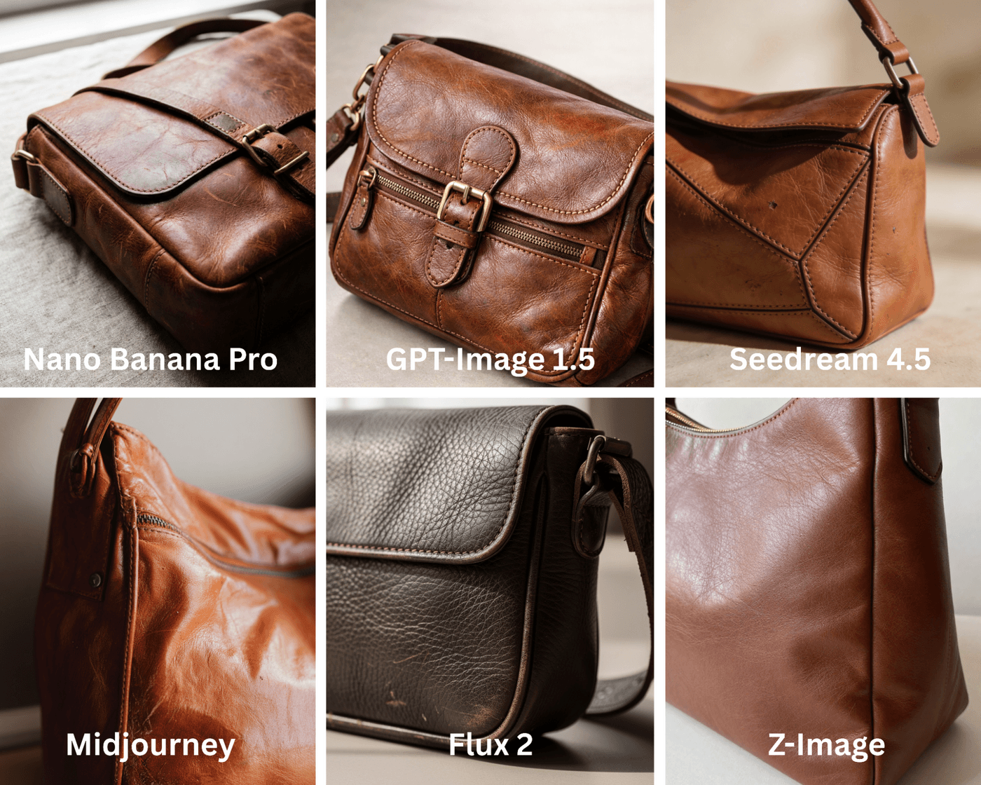 Category winner: Flux 2 for material accuracy and clarity. Nano Banana Pro is a close second for its contextual detail and realism.