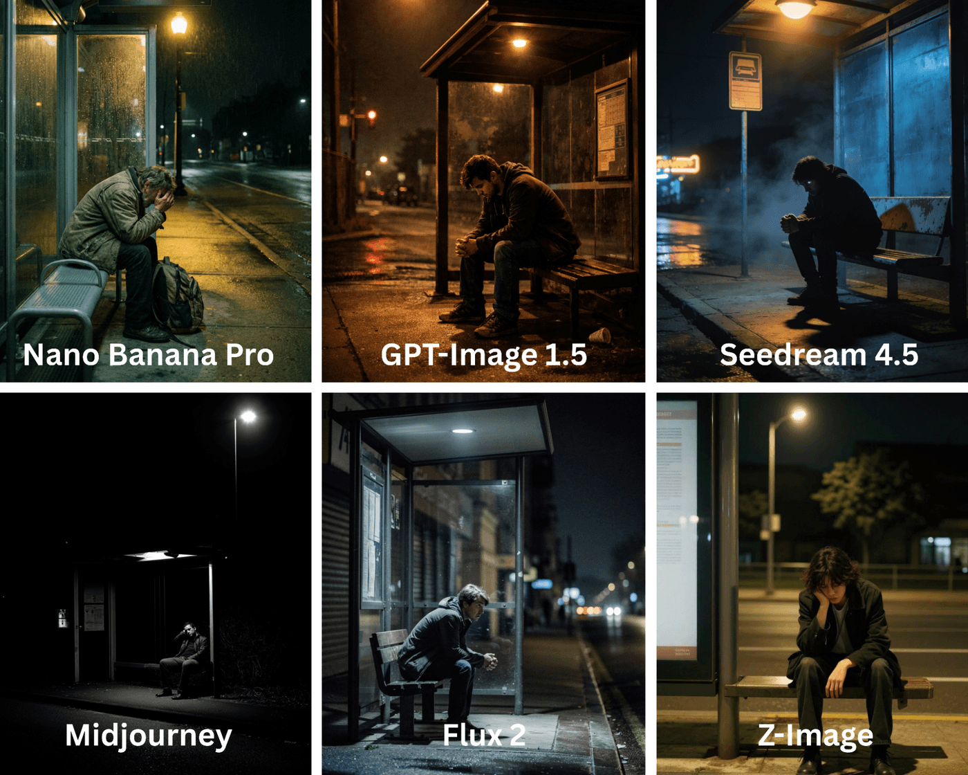 Once the subject is right, mood becomes the differentiator. Lighting, color balance, framing, and facial expression are what make an image feel calm, tense, playful, or premium. Some models respond clearly to small shifts in language, while others need heavy prompting to move the needle.