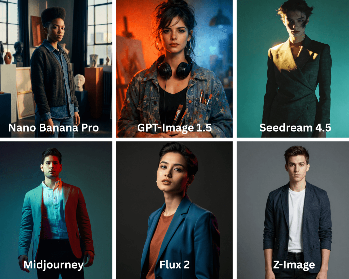 Midjourney thrives on cinematic flair and bold artistic choices. Flux 2 brings realism and material detail that hold up under scrutiny. GPT-Image 1.5 balances brand safety with flexibility, while Nano Banana Pro keeps things controlled and execution-ready. Seedream leans into imagination, and Z-Image keeps workflows fast and structured.
