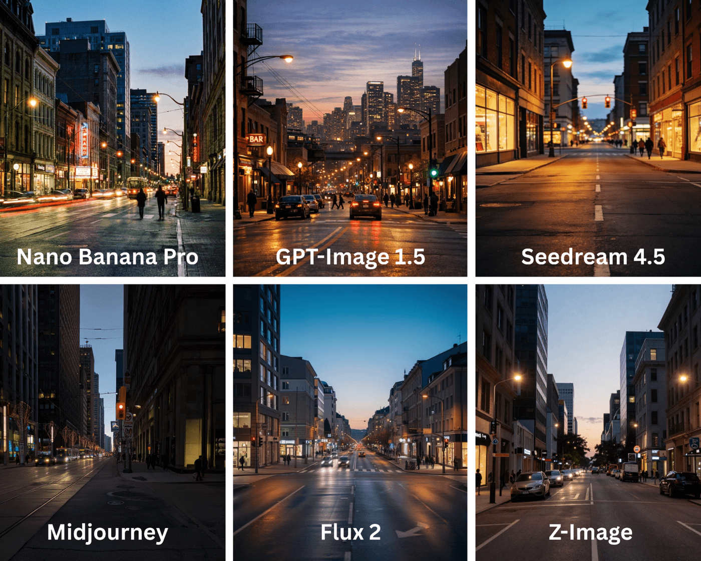 Nano Banana Pro vs GPT-Image 1.5 vs Flux 2 vs. Seedream vs. Midjourney vs. Z-Image: Comparison Snapshot