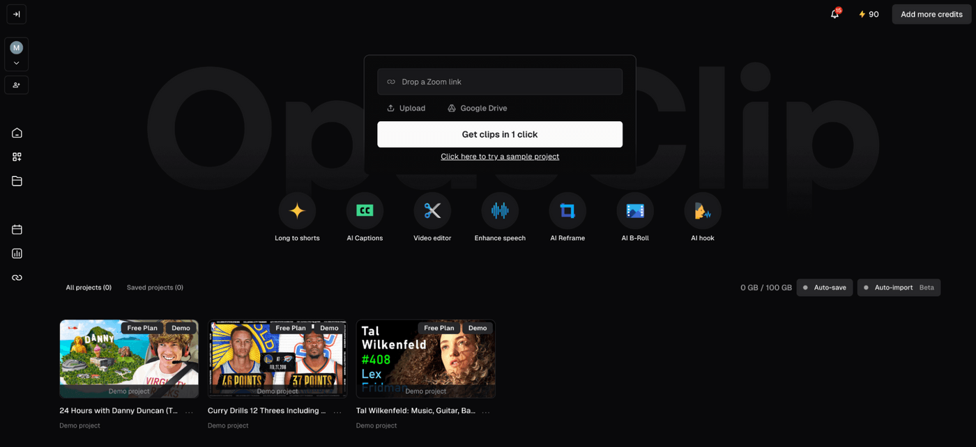 Opus Clip takes a different approach to promo creation. It's built for repurposing existing long-form video content into short, punchy promotional clips. Upload a recorded product demo, webinar, podcast, or presentation, and the AI scans the footage to identify the most engaging moments, then automatically edits them into social-ready promo clips.