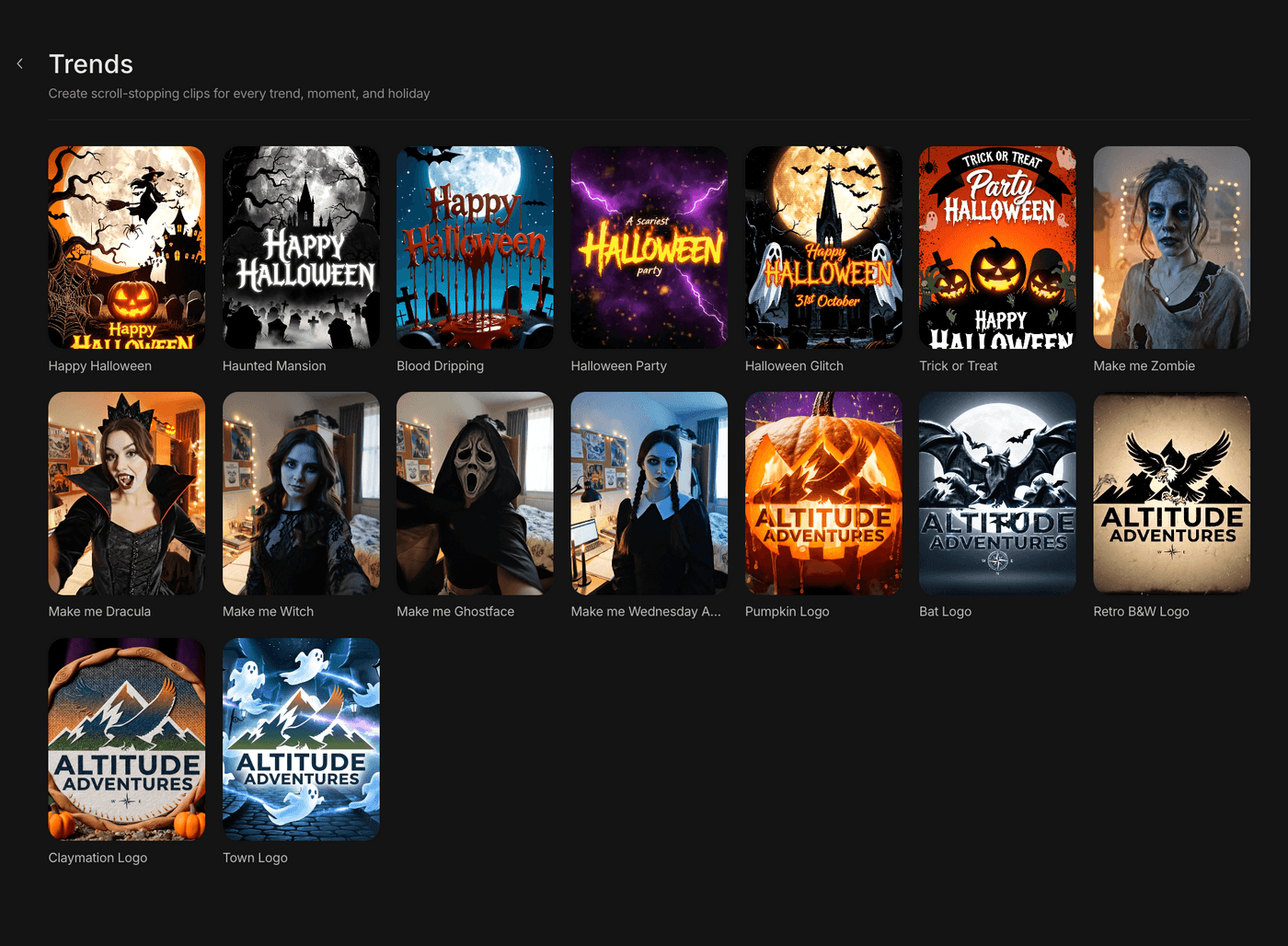 For influencers and content creators who are looking for ideas to post this Halloween, you can turn a simple photo of yourself into a short video clip that transforms into a spooky version of you, maybe Zombie transition, a witch, or your favorite spookiest Halloween character.