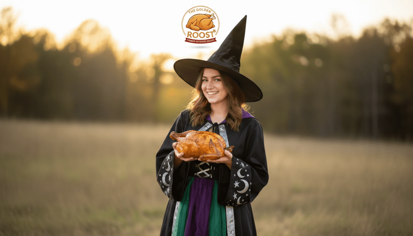 Check out this example video showing a female influencer transforming into a witch costume, but instead of a crystal ball, it features a roasted chicken with the brand displayed on top of the video.