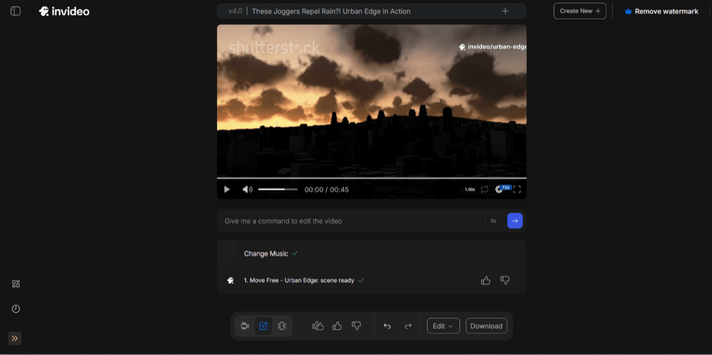 Once generated, open the video in the editor. If you want to make specific edits, simply give a command in the input area, and the changes will be made automatically.