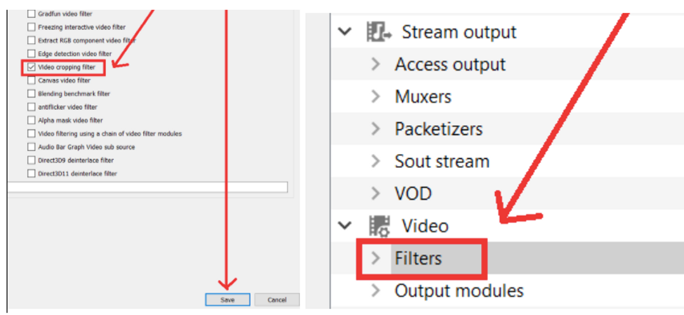 Step 3: Continue to hit the “Video” > “Filters”, tick the “Video Cropping Filter” and click “Save” to store all selected operations.