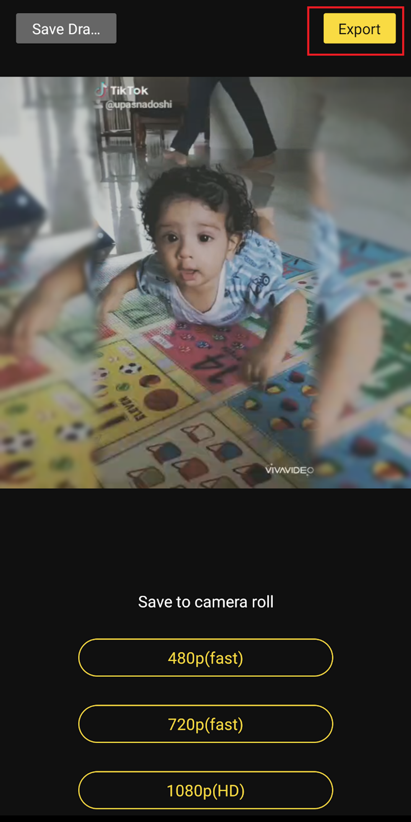 Step 5: Tap on the “Export” button on the right top of your screen and then select the resolution you want to save your video with.