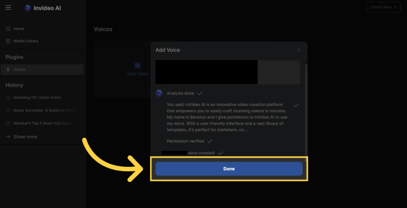 - Click on "Done," and voila! Your voice will be cloned!