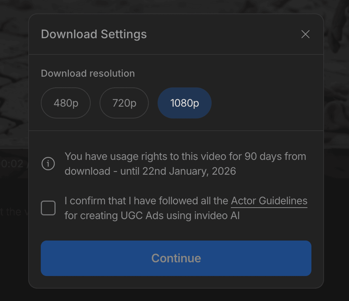 Once you're satisfied, download the video in up to 1080p resolution. No watermarks are added if you're on a paid plan.