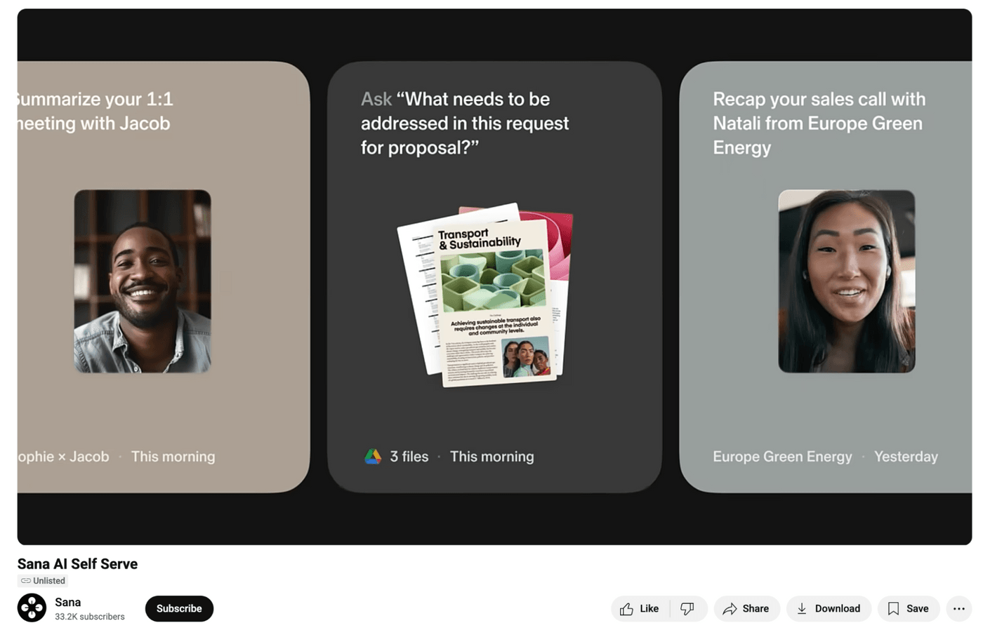 These need to be direct, conversion-focused, and built to drive sales or sign-ups like this ad from Sana AI that focuses on generating intro sign ups for their software.