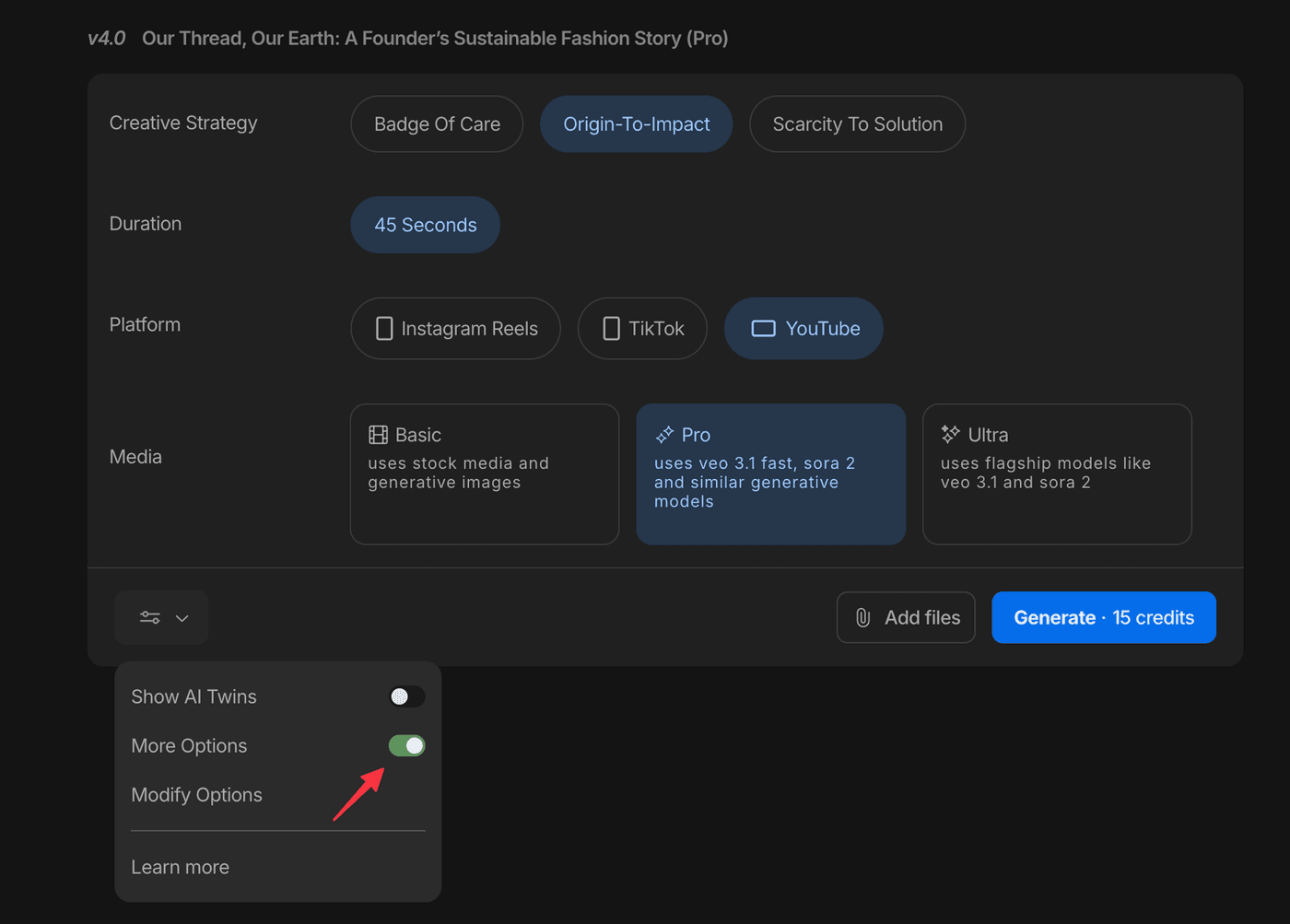 Under Media Quality, choose between Pro or Ultra and then click Generate to create your video.