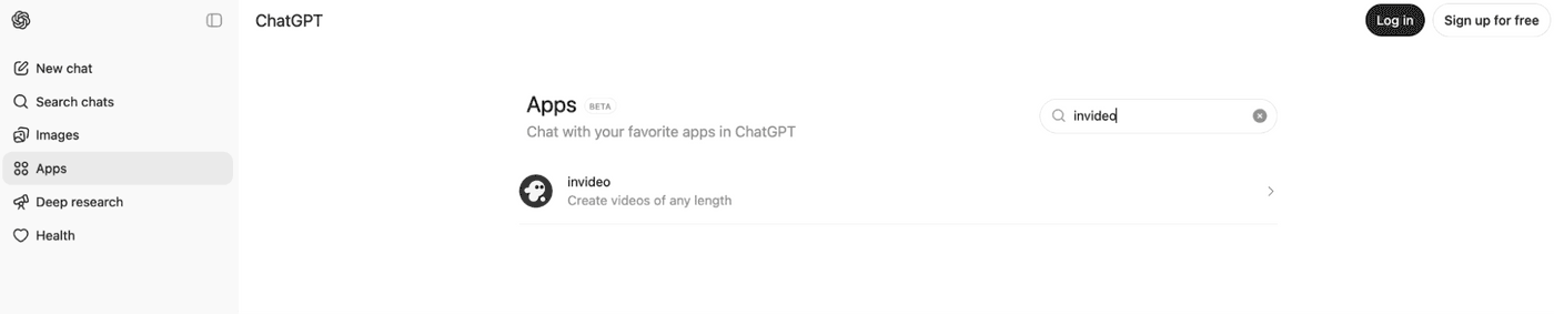 Install The Invideo App in ChatGPT