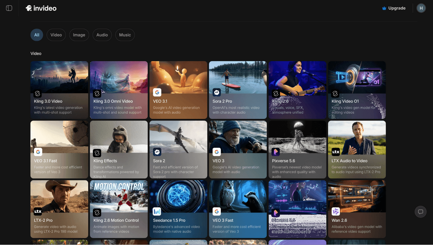 In the invideo ecosystem, "casting" means choosing your visual DNA. You’ll select an Agent (your workflow) and a Generative Model to define the aesthetic and movement.