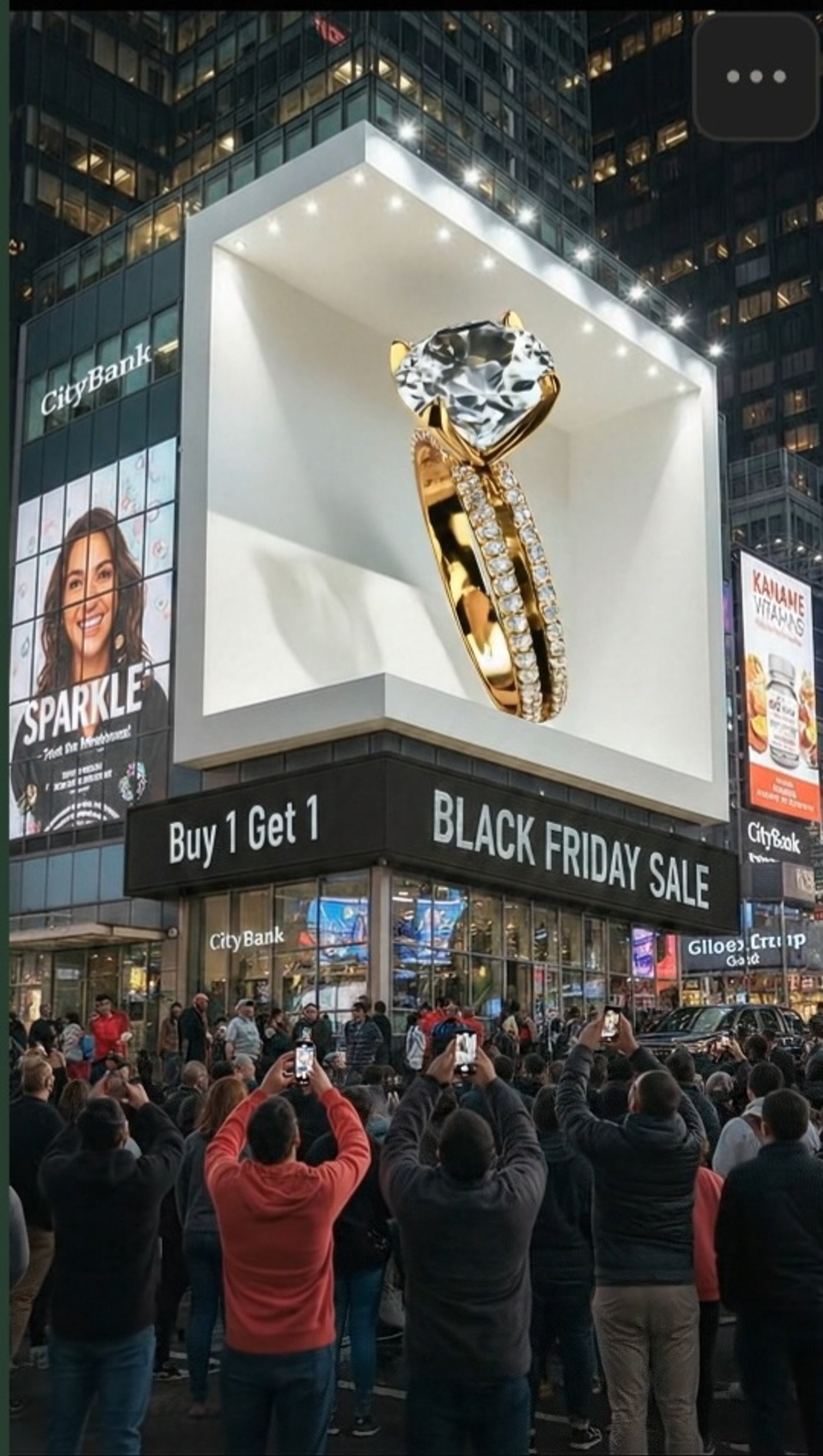 Strong visuals set the emotional tone of a destination, and travel brands can use this to create instant connection. For example, this oversized billboard in Times Square, with crowds stopping to watch a dramatic jewelry reveal.
