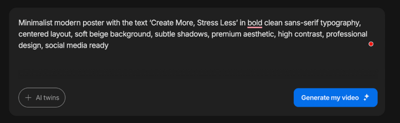 Ideogram AI depends heavily on how clearly you describe your idea. When writing your prompt, always include the exact text you want in quotation marks so the tool understands what needs to appear in the image.