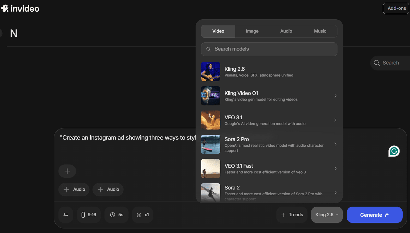 This is where invideo fits naturally. As an AI creative stack, it removes production friction so small teams can generate, test, and refresh Reels, feed videos, and image ads at the pace the algorithm now rewards.