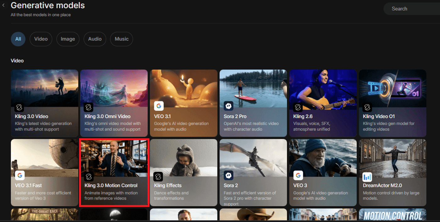 Open or log in to your invideo dashboard and go to Agents & Models. Select Kling 3.0 Motion Control from the available options and create your project.