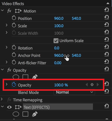 Step 7: You might still feel that your video is too bright or over-exposed. To change this, you simply need to go back to the “Effect Controls” menu again. Make sure that your light leak layer is selected in the timeline first. Now in the Effect Controls menu, go to the “Opacity” dropdown. Click on the “Stopwatch” icon next to the Opacity filter to disable keyframes. Make sure that it’s not blue in colour, but white. Now edit the opacity till you are happy with it.