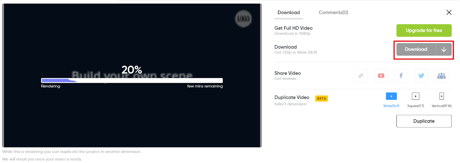 Step 13: Your video will now start to render. Once it’s complete, you can click on the “Download” button to save it to your system or share directly on various social media platforms.
