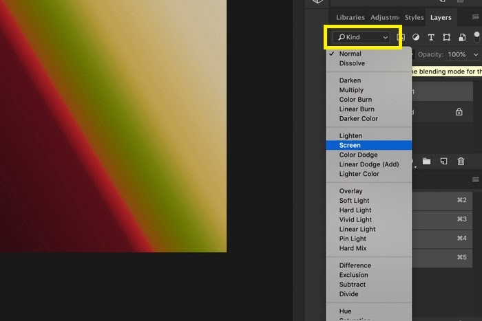 Step 3: Now, under the Layers tab, click on the Blending Mode drop down menu and select “Screen”.