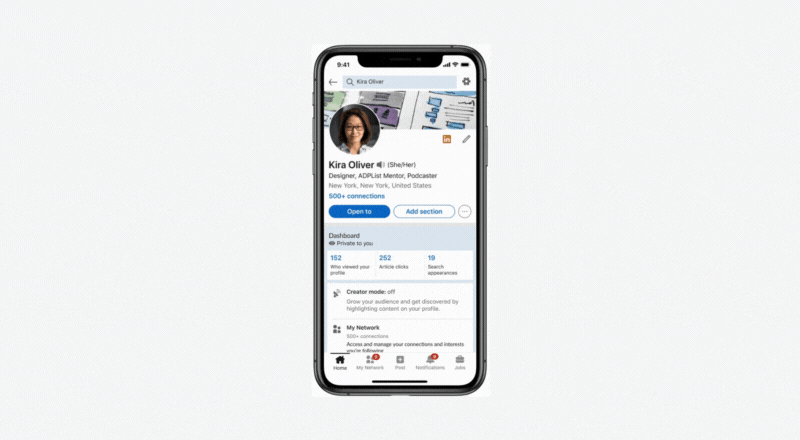 With this latest LinkedIn feature, you can let other LinkedIn users know if you are looking for a change in role or if you’re a recruiter. These tags get added to your profile as a photo frame and are meant to catch the attention of anyone who sees your profile.