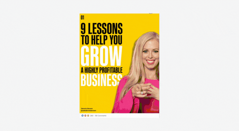 A carousel post is your opportunity to get your audience’s attention. Use this space to create informative posts that can add value to anyone investing the time to go through it - like in the example above - Dennis Brown shares 9 lessons to grow a profitable business through a carousel post.