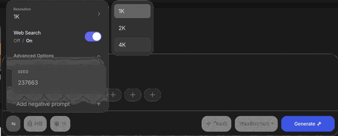 Nano Banana 2 supports resolutions from 512 pixels up to 4K and works across multiple aspect ratios, including vertical, square, widescreen, and ultra wide. This covers most social media, web, and video use cases.