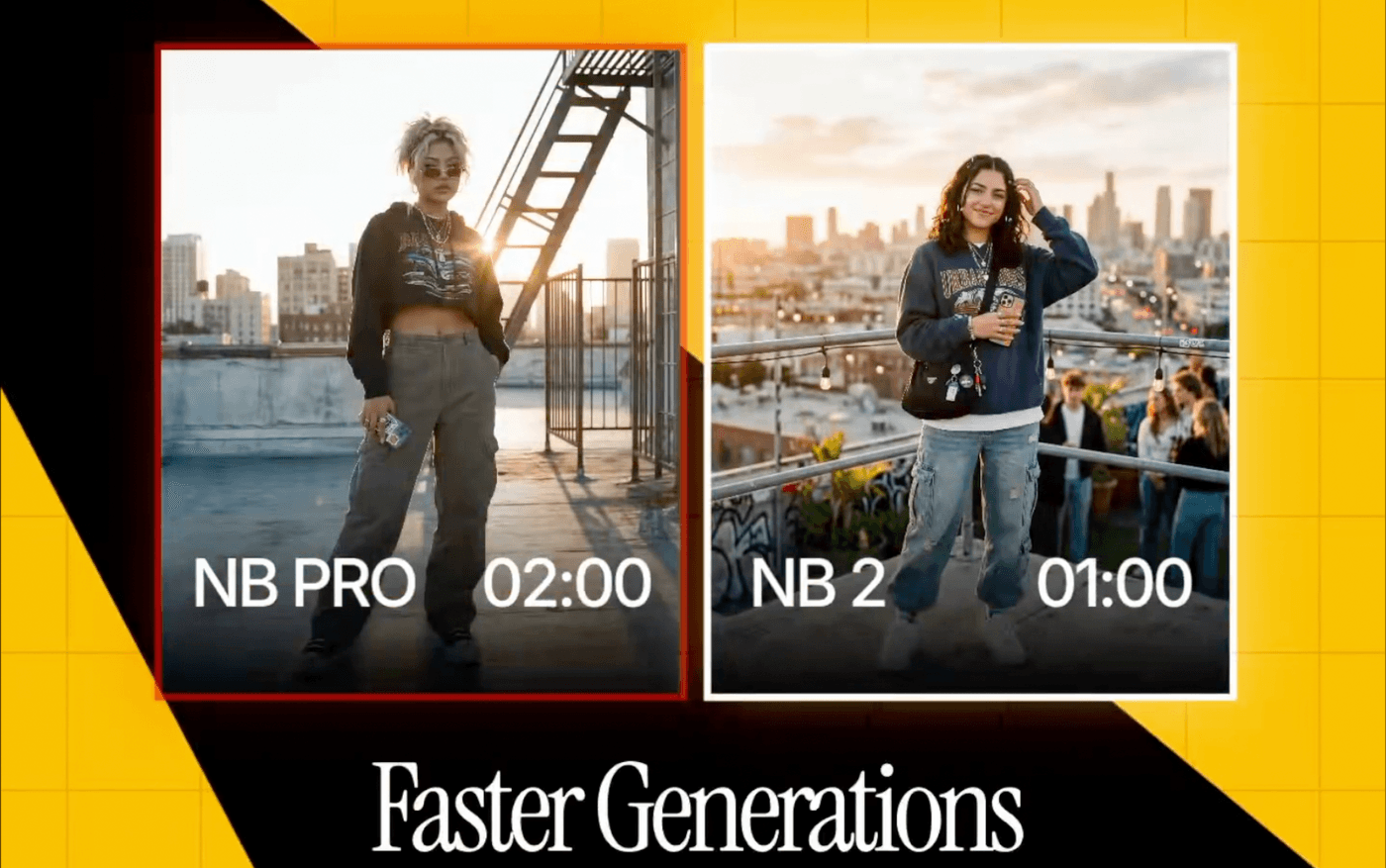 Speed sounds like a ‘nice-to-have’ until you work on a deadline. Nano Banana 2 is designed to keep the quality level high while generating much faster. With Gemini 3.1 Flash Image you can do more of what good teams already do: try five versions, not one. Instead of waiting minutes for a single storyboard frame or ad mockup, you can try several versions at the same time. More shots at goal without more budget.