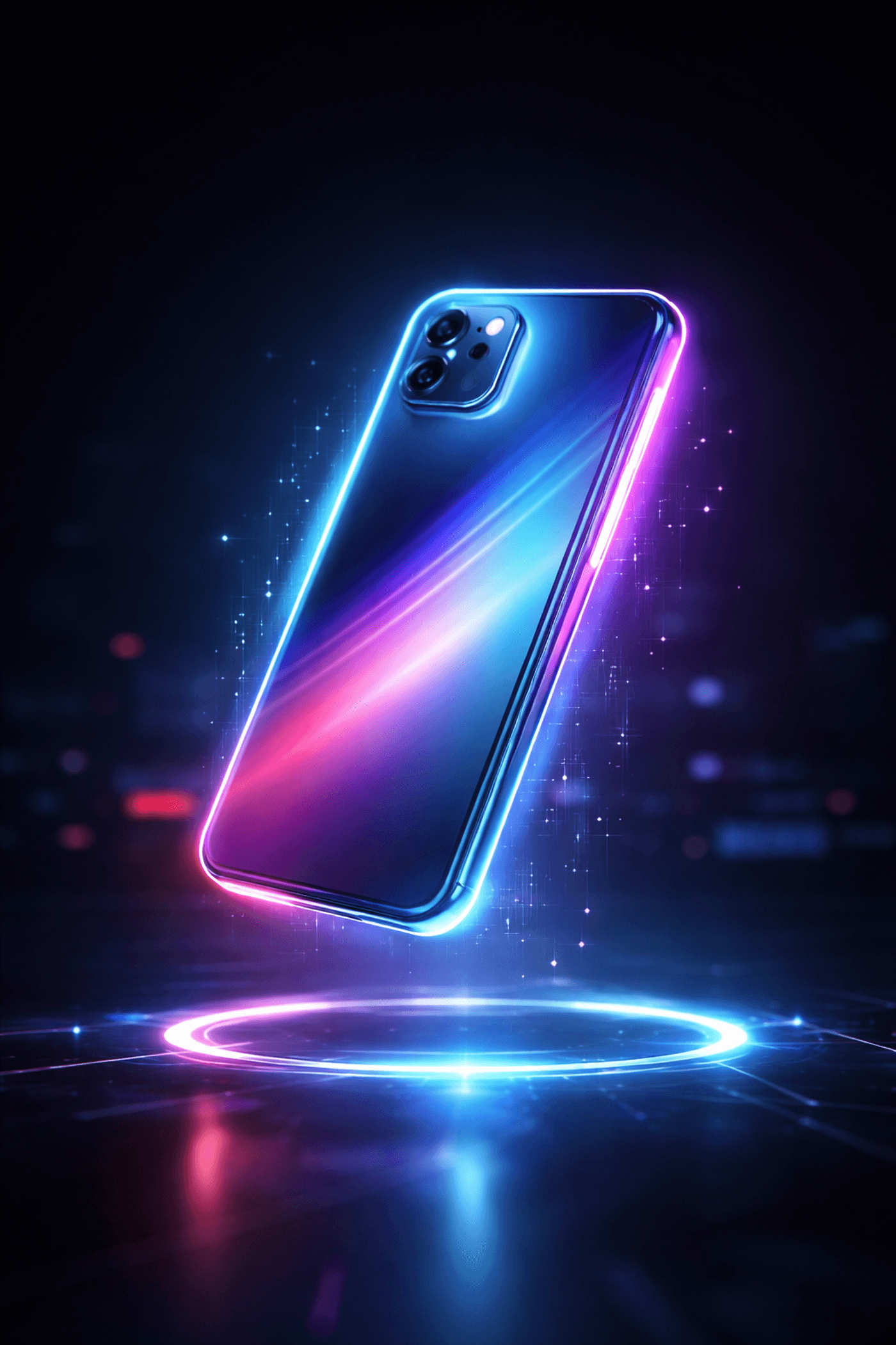 Smartphone floating mid-air with glowing edges, futuristic style