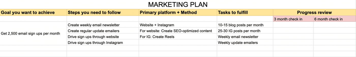 Once you’ve determined which activity will help you get the best results, it’s time to figure out the steps you need to take in order to get the best results. For instance, if you zero in on email marketing and building an email list to achieve your goal of getting 15 clients for 2022, how exactly will you go about it?
