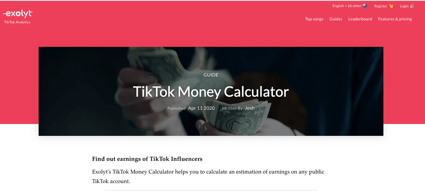 Es una de las calculadoras de TikTok más populares para conocer los ingresos potenciales de una cuenta dentro de la app. Es importante destacar que su calculadora solo funciona con la versión occidental, más no con la versión china Douyin.