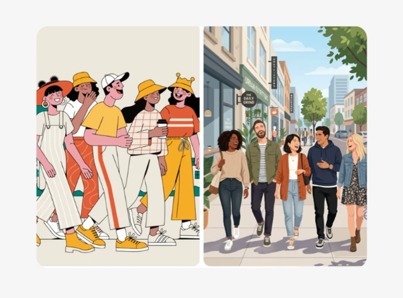 Upload reference images and define custom styles to lock in your visual identity. Every image Recraft generates follows your brand guidelines, colors, style, and composition. Perfect for marketing teams creating assets at scale.